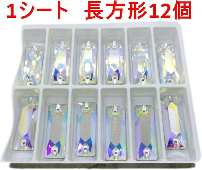 ハイエンド AB 加工 長方形 オーロラ クリスタル チャーム 2穴 手芸 材料 DIY パーツ A5ランク A6ランク ガラスビシ゛ュー ガラスストーン (長方形オーロラ9x26mm12個)