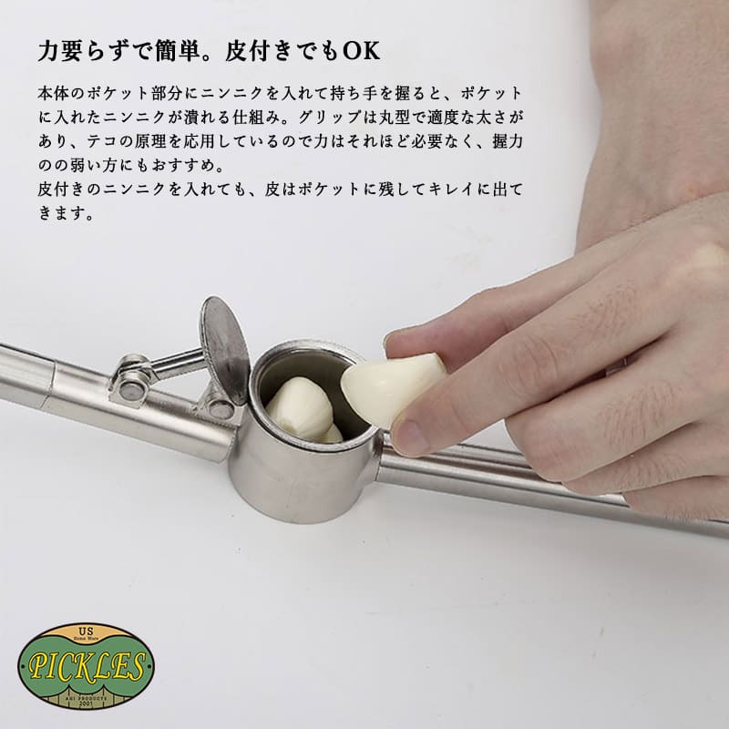 ガーリックプレス器 PICKLES ピクルスにんにく潰し ステンレス 頑丈 清潔 高品質 調理器具 キッチンツール おしゃれ シンプル 北欧デザイン PK-A1026