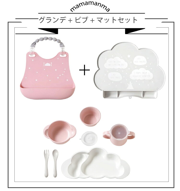10mois ディモワ mamamanma マママンマ グランデ + シリコン ビブ + シリコン マット セット 大きめサイズ 食器セット ギフト フィセル 電子レンジ・食洗機 対応 抗菌作用 プレゼント