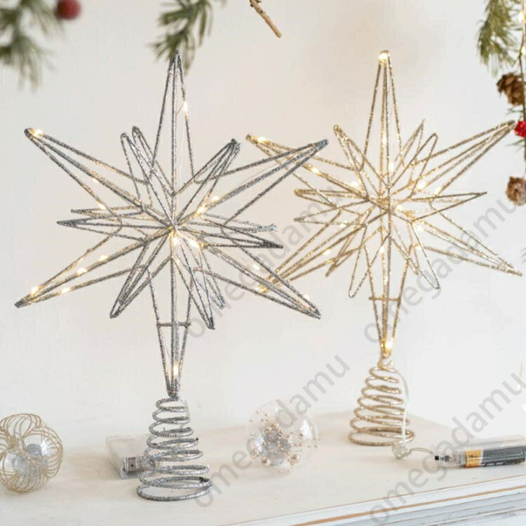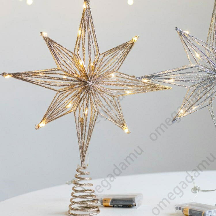 クリスマスツリー クリスマスツリー トップスター 装飾 30cm 星 飾り 飾り オーナメント 北欧 クリスマスツリー ツリー クリスマス スター 飾り付け LEDライト付き 八角星 六角星 キラキラ 電池式 ゴールド シルバー 大きめ トップスター クリスマスツリーライト