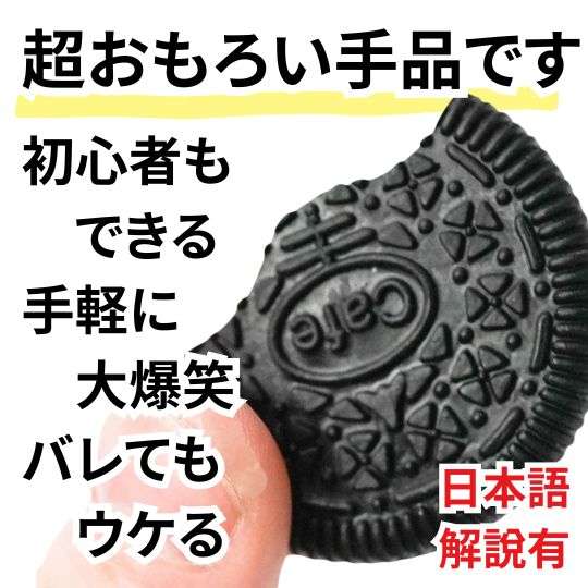 【オレオの復活】手品の説明:一口食べたオレオが瞬間で復活します、 マジシャンはクッキーを一口食べます。食べかけのクッキーに息を吹きかけた瞬間・・・ オレオクッキーは一瞬で復活します! 【使ってみた感想】コンビニのオレオより若干色は薄い気がしますが、急に出されたらわからないと思います。ゴムが切れやすいですが、替えのゴムは輪ゴムでよさそうでコスパもいいと思います。 【動画解説付】初心者向けに手品の種明かし、やり方説明をした動画説明が付録で付きます。封入されてないときはメッセージいただければ動画を配布します。 【現品撮影・国内発送】現物撮影+検品+補修。海外製造ですが、国内のスタジオで日本人のカメラマンが現物で商品を撮影、スタッフが出荷時に検品と補修。万が一国際便での発送の場合は全額返金して商品は無償で差し上げます。 【仕様】5個セットです。配っても、あげても、みんなで遊んでも良し!