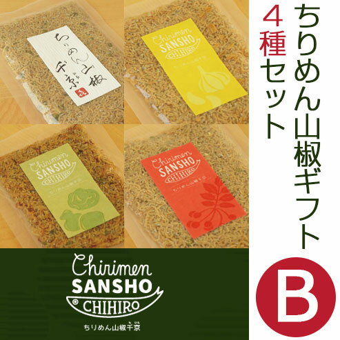 お歳暮 ちりめん山椒ギフトセットB 4種つめ合わせ 5袋入り(ちりめん山椒×2・にんにく・ホワイトトリフオイル・赤山椒粉) 化粧箱入り ちりめん山椒 千京-Chirimen SANSHO CHIHIRO- ギフト のし対応可 冬ギフト