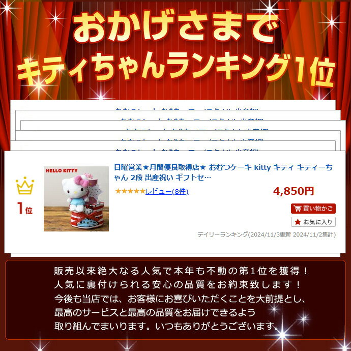 11月19日(水)★到着可能★ おむつケーキ kitty キティ キティーちゃん 2段 出産祝い ギフトセット 名入れ 刺繍 名前入り 送料無料 イニシャル ミニタオル グッズ ベビー用品 人気 可愛い プレゼント 赤ちゃん 女の子 ベビーシャワー 専門 クリスマス 出産記念品