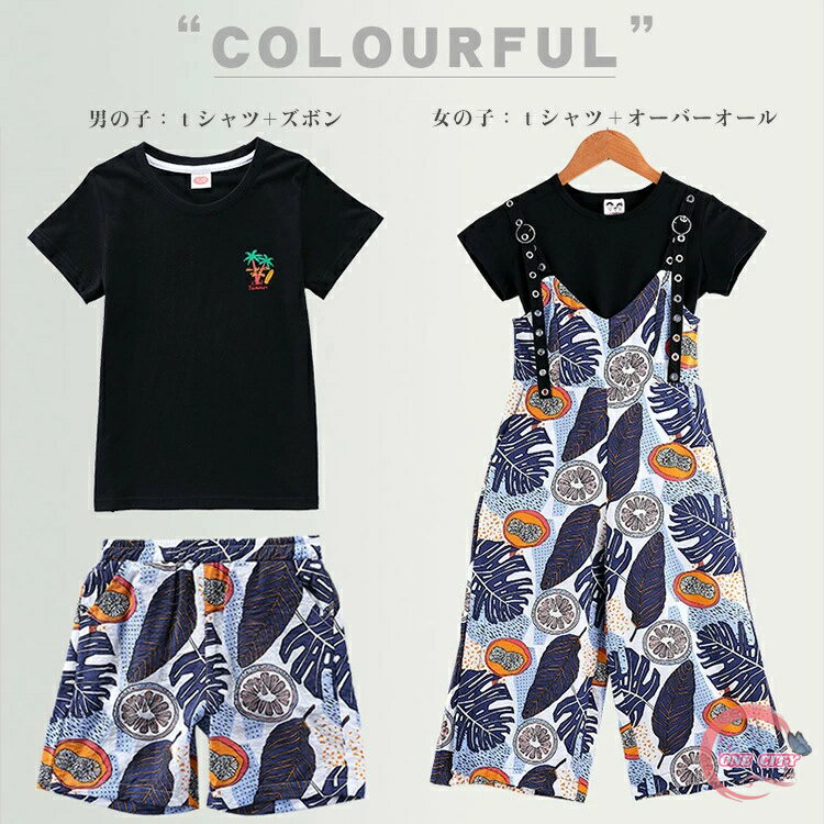 ゴールデンウイーク 親子ペア 親子ペアルック tシャツ ズボン オーバーオール リゾートウェア 4人 夏 旅行 水着 海遊び 2点セット ペアルック リンクコーデ セット ペアtシャツ 親子セット 親子コーデ 親子ルック パパ ママ 子供 女の子 男の子 おそろい ゆったり ブルー