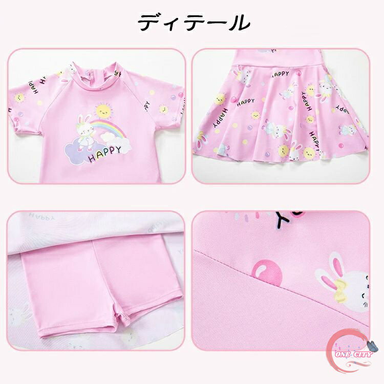 キッズ 水着 女の子 ワンピース 半袖 オールインワン お洒落 子ども ベビー ジュニア 90 100 110 120 130 140 150 160 海 プール ビーチ リゾート 夏 温泉 ハイネック 幼稚園 保育園 小学生 露出控えめ 紫外線対策 花柄 フリル ピンク
