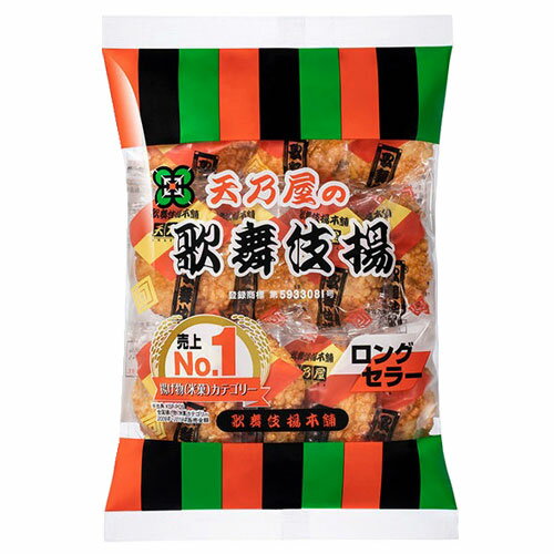 香ばしく揚げた歌舞伎の家紋入り生地に、天乃屋秘伝の甘口しょうゆタレで味付けした風味豊かな揚げせんべい。1960年発売から皆様に愛されてきたロングセラー商品です。■商品詳細メーカー名:天乃屋内容量:11枚入×3袋購入単位:1セット(3袋)配送種別:在庫品原材料:うるち米(国産、米国産)、植物油、砂糖、しょうゆ(小麦・大豆を含む)、果糖ぶどう糖液糖、調味エキス(大豆を含む)、食塩/加工でん粉(小麦由来)、調味料(アミノ酸等)、カラメル色素※リニューアルに伴いパッケージや商品名等が予告なく変更される場合がございますが、予めご了承ください。※モニターの発色具合により色合いが異なる場合がございます。【検索用キーワード】4901035115133 SY2610 天乃屋 歌舞伎揚 11枚入×3袋 あまのや アマノヤ 天乃屋の歌舞伎揚 歌舞伎揚げ 歌舞伎あげ かぶきあげ カブキアゲ 歌舞伎揚本舗 食品 お菓子 おかし 菓子 かし 米菓 べいか おやつ オヤツ 煎餅 せんべい センベイ 揚げ煎餅 揚げせんべい 揚げせん おかき オカキ 醤油煎餅 しょう油煎餅 しゅうゆ煎餅 醤油味 しょう油味 しょうゆ味 醤油味 しょう油 しょうゆ 甘口しょうゆタレ 甘口 香ばしい 風味