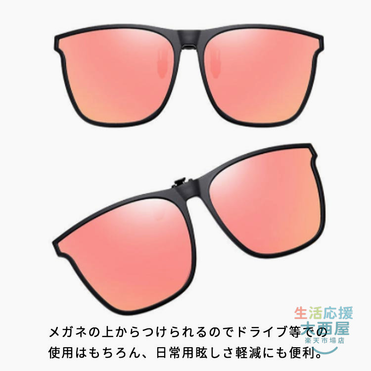 メガネの上から サングラス 調光 偏光 クリップオン 跳ね上げ クリップ式 ワンタッチ装着 かけたまま メンズ レディース UVカット 軽量