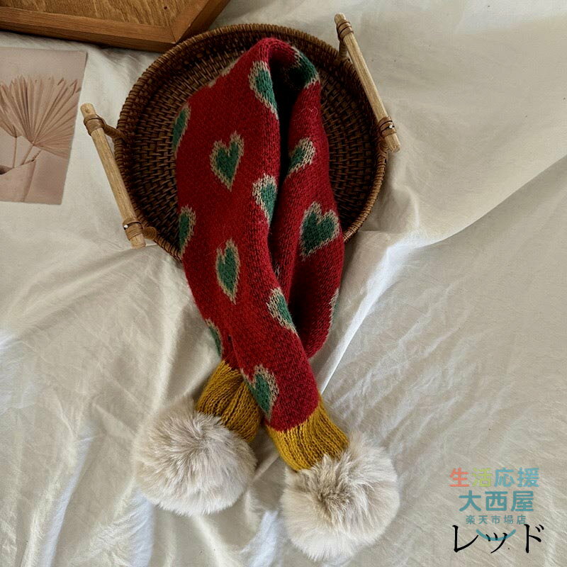 【ブラックフライデー|P5倍&クーポン|11/27まで】 マフラー キッズ ハート柄 ニットマフラー 毛玉付き 防寒 ネックウォーマー 厚手 保温 ベビー 幼児 かわいい もこもこ