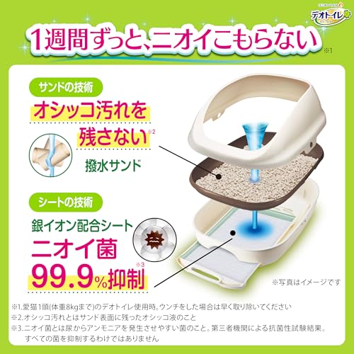 【フードカバーで飛び散り防止】デオトイレ本体セット [約1か月分 猫砂・シート付] 猫用トイレ本体 フード付き シルキーホワイト