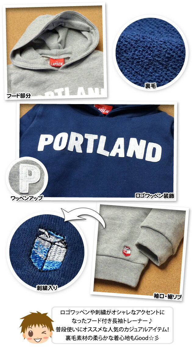 子供服 男の子 プルオーバー パーカー 長袖 lapsen 裏毛 ロゴワッペン 刺繍入り 男児 キッズ 110cm 120cm 130cm