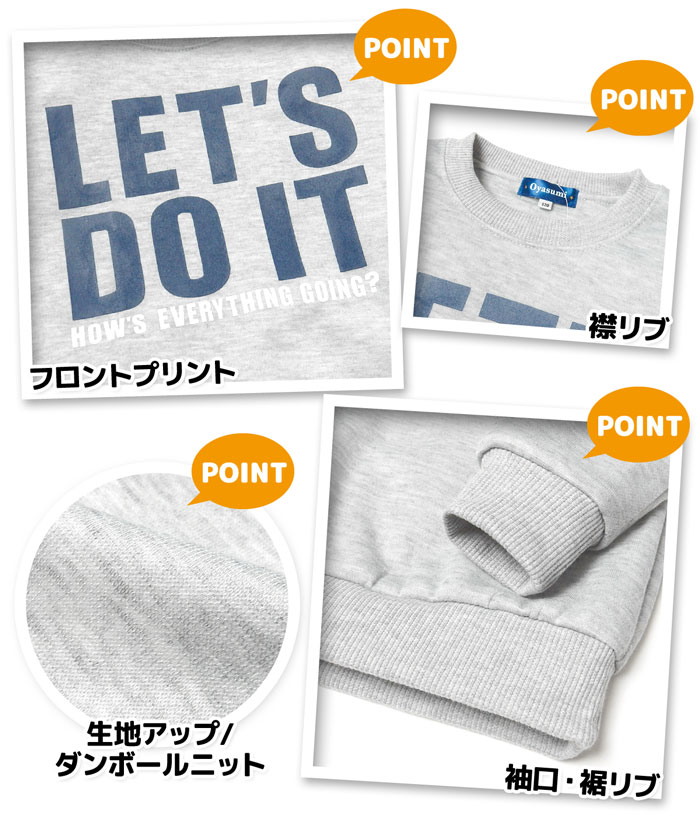 コメント お洒落なロゴ入りデザインスウェッ ト長袖パジャマ☆軽くてソフトな肌 触りの綿混ダンボールニット素材♪ 伸縮性もあり着心地抜群◎袖口や裾 部分はリブ仕様でもたつかず快適で す。 特長 ・Oyasumi style(オヤスミスタイル) ・長袖パジャマ ・上下組 ・スウェットスーツ ・ダンボールニット素材 ・綿混素材 ・ロゴプリント ・軽い/軽量 ・伸縮性 ・丸首/クルーネック ・襟/袖口/裾リブ ・ロングパンツ/長ズボン ・ウエストゴム/ゴム入れ替え口付き ・バックポケット1P ・かっこいい/カッコイイ/ おしゃれ/シンプル/ナイトウェア/ ルームウェア/リラックスウェア/ 部屋着/上下セット/春/秋 素 材 ・(本体)ポリエステル80% 綿20% ・(リブ)ポリエステル95% ポリウレタン5% 対 象 ・子供用 ・男の子 サイズ /サイズ/身丈/身幅/肩幅/袖丈/ 【120cm】/49/40/32/37cm/ 【130cm】/53/42/35/41cm/ (単位:cm) ※パンツは各サイズに適合した大きさです。 商品を実際に採寸した平均値です。 個体によっての若干の誤差はご了承ください。 商品番号 my-0069_331502_203【G01】