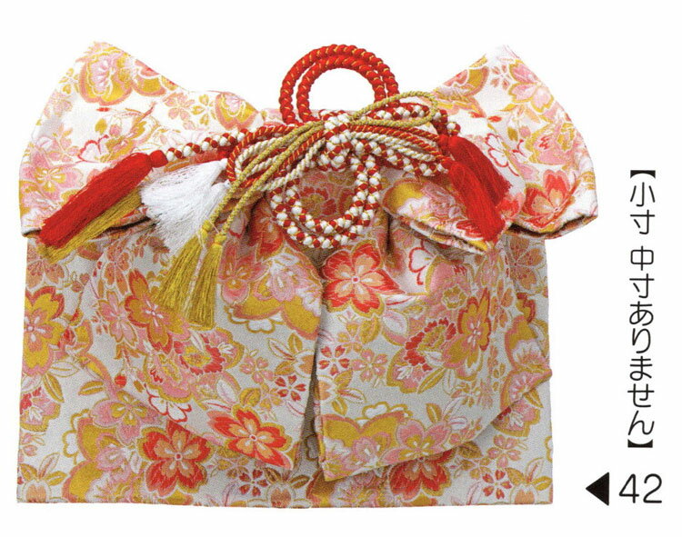 結び帯 はこせこ5点 ペアーセット。7歳用 大寸Lサイズ 七五三からお正月まで、さまざまな晴れの日に大活躍します。 【 結び帯 はこせこ ペアーセット 】 七五三の七歳のお祝いに豪華な帯と箱せこセットはいかがですか? 着物を彩るのにかかせない小物類です。 草履やバッグなどがセットになっています。 箱せこセットとは、草履、バック、丸絎(まるぐけ)又は 帯締、末広(扇子) お守り、筥迫(はこせこ)がセットになったものをいいます。 ●内容と説明 [女児用結び帯] 素材 ポリエステル、ナイロン サイズ 大 [草履] L サイズ 大寸(21.0cm) [バッグ] [丸絎] 「まるぐけ」と言います。帯締の一種です。 丸い棒状になっており、芯に真綿が入っています。 七五三や花嫁衣装に用いられます。 [末広] 扇子のことです、縁起をかつぎ「すえひろ」と呼びます。 帯に挟みます。 [筥迫] 「はこせこ」と言います、箱迫とも書きます。 中にちり紙を入れ、衿の合わせ目、懐に少しはみ出させて携帯します。 江戸時代は武家の女性のたしなみであり、おしゃれのポイントでした。 今では七五三や花嫁衣装の装飾として残っています。 [お守り] ●なおこのセットには髪飾りが付属していません。 髪飾りもご希望の方は別途お求め下さい。 メーカーよりお取り寄せ後の発送になります、 ご理解下さい。 ※受注発注品のため御注文後メーカーに在庫を確認し、納期のご連絡をいたします。 発送までには通常4日から7日、状況により一週間以上の お時間が必要となる場合がございます。 お急ぎの場合には事前にお問い合わせください。結び帯 はこせこ5点 ペアーセット。7歳用 大寸Lサイズ 七五三からお正月まで、さまざまな晴れの日に大活躍します。 【 結び帯 はこせこ ペアーセット 】 七五三の七歳のお祝いに豪華な帯と箱せこセットはいかがですか? 着物を彩るのにかかせない小物類です。 草履やバッグなどがセットになっています。 箱せこセットとは、草履、バック、丸絎(まるぐけ)又は 帯締、末広(扇子) お守り、筥迫(はこせこ)がセットになったものをいいます。 ●内容と説明 [女児用結び帯] 素材 ポリエステル、ナイロン サイズ 大 [草履] L サイズ 大寸(21.0cm) [バッグ] [丸絎] 「まるぐけ」と言います。帯締の一種です。 丸い棒状になっており、芯に真綿が入っています。 七五三や花嫁衣装に用いられます。 [末広] 扇子のことです、縁起をかつぎ「すえひろ」と呼びます。 帯に挟みます。 [筥迫] 「はこせこ」と言います、箱迫とも書きます。 中にちり紙を入れ、衿の合わせ目、懐に少しはみ出させて携帯します。 江戸時代は武家の女性のたしなみであり、おしゃれのポイントでした。 今では七五三や花嫁衣装の装飾として残っています。 [お守り] ●なおこのセットには髪飾りが付属していません。 髪飾りもご希望の方は別途お求め下さい。 メーカーよりお取り寄せ後の発送になります、 ご理解下さい。 ※受注発注品のため御注文後メーカーに在庫を確認し、納期のご連絡をいたします。 発送までには通常4日から7日、状況により一週間以上の お時間が必要となる場合がございます。 お急ぎの場合には事前にお問い合わせください。