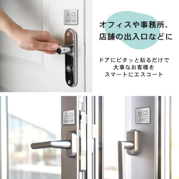 かたちラボ 入口 出口 ドアプレート サイン 入口 ENTER 出口 EXIT 四角 シルバー ステンレス調 シール式 日本製