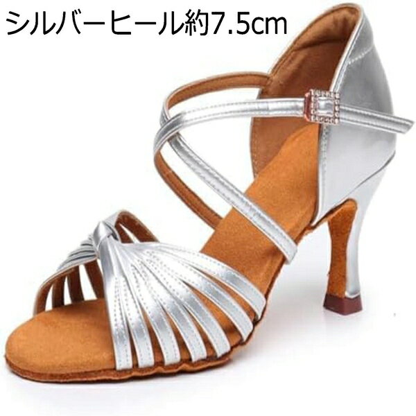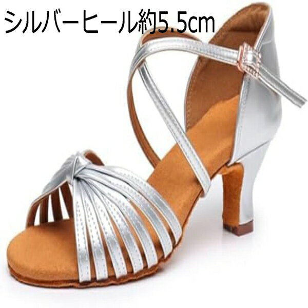 社交ダンスシューズ モダン女性 ヒール約5.5cm 7.5cm 8.5cm レディース ラテン ダンスシューズ 大人安定感 ステージ用に最適 ジャズダンス サンダル ダンスシューズ 舞台用 シルバー