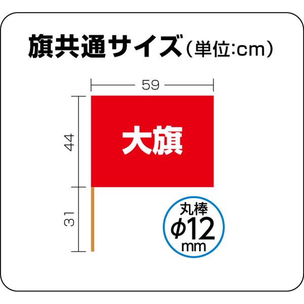 おすすめ・人気の商品■サイズ・色違い・関連商品■シルバー■メタリックグリーン■メタリックピンク■メタリックオレンジ■メタリックレッド■メタリックブルー[当ページ]■ゴールド■商品内容【ご注意事項】この商品は下記内容×10個セットでお届けします。・サテン大旗 メタリックブルー φ12mm【商品説明】サテン製の旗に新しく小旗タイプが登場!■商品スペック【商品サイズ】旗:約590×440mm、棒:φ12×750mm【包装形態】包装なし重量87g【セット部品】本体×1【材質】ポリエステル【原産国】中国■送料・配送についての注意事項●本商品の出荷目安は【1 - 3営業日 ※土日・祝除く】となります。●お取り寄せ商品のため、稀にご注文入れ違い等により欠品・遅延となる場合がございます。●本商品は仕入元より配送となるため、沖縄・離島への配送はできません。