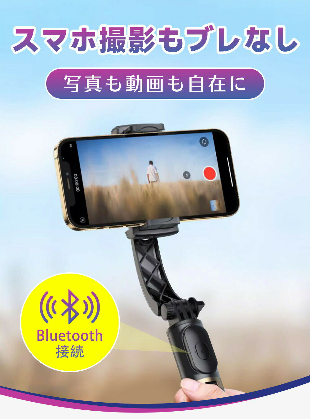【プロ並みの動画撮影】ジンバル カメラ 自撮り棒 三脚付き セルカ棒 手ブレ補正 カメラ スマホ用 ジンバル iphone 360°自動回転 自撮り棒 Bluetoothリモコン 4段階伸縮 Android Vlog撮影 軽量 スマホジンバル 高品質 耐久性抜群 手持ち スタビライザー ジンバル スマホ
