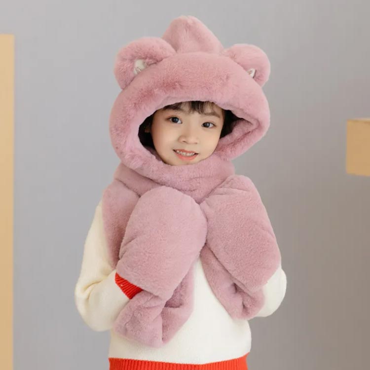 ギフトにも最適◎くま耳がかわいくて暖かい♪かわいい熊デザイン!肉厚でボリュームたっぷり、冬ファッションに必ず大活躍、子供用の防寒アイテムです。帽子とマフラーが一体となってるデザインで首、頭、耳全般的に守ってくれる。肌触り抜群のふわふわフェイクファー素材は寒い季節に優しくて暖かい守りをもたらす。機能性とデザイン性を兼ね備えて、秋冬コーデのアクセントになれる。秋冬のお出かけ、通園時最適なアイテムです。 サイズ 2-12歳おすすめ サイズについての説明 2-12歳おすすめ 素材 ポリエステル 色 アイボリー ベージュ グレー ピンク ホワイト 備考 ●サイズ詳細等の測り方はスタッフ間で統一、徹底はしておりますが、実寸は商品によって若干の誤差(1cm〜3cm )がある場合がございますので、予めご了承ください。 ●商品の色は、撮影時の光や、お客様のモニターの色具合などにより、実際の商品と異なる場合がございます。あらかじめ、ご了承ください。 ●製品によっては、生地の特性上、洗濯時に縮む場合がございますので洗濯時はご注意下さいませ。 ▼色味の強い製品によっては他の衣類などに色移りする場合もございますので、速やかに(脱水、乾燥等)するようにお願いいたします。 ▼生地によっては摩擦や汗、雨などで濡れた時は、他の製品に移染する恐れがございますので、着用の際はご注意下さい。 ▼生地の特性上、やや匂いが強く感じられるものもございます。数日のご使用や陰干しなどで気になる匂いはほとんど感じられなくなります。