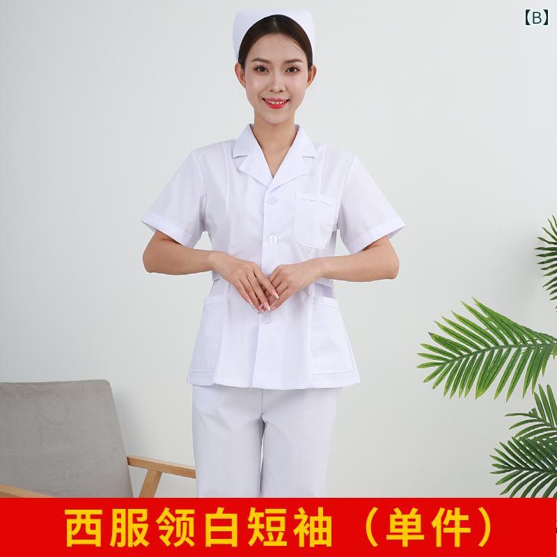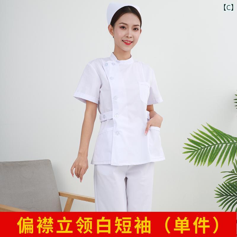 ナース服 大きめサイズ レディース トップス パンツ キャップ セット 春夏 長袖 半袖 スタンドカラー 丸襟 ボタン ポケット ウエストゴム 薄手 涼しい スリム ソフト シンプル 無地 白
