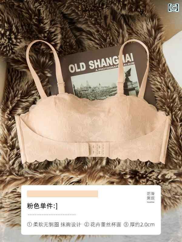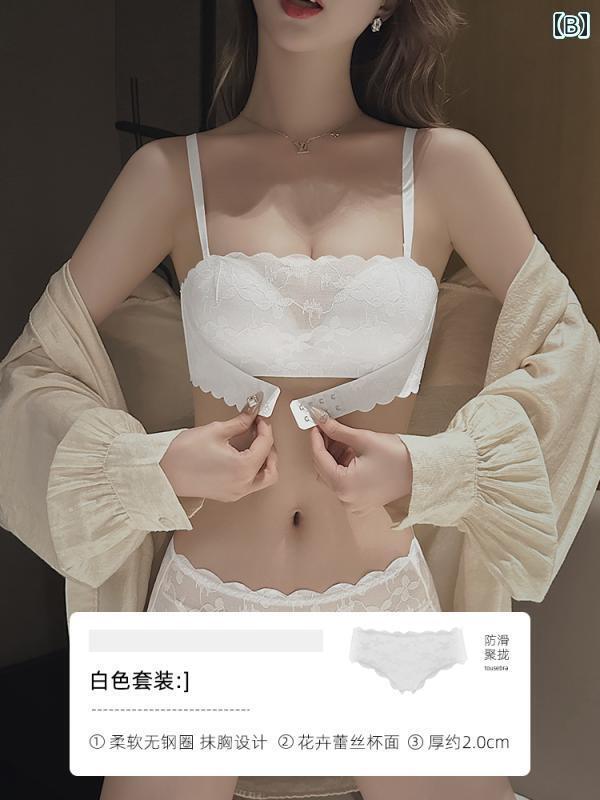 レディース 下着 インナー 胸 小さめ フロント ボタン スチール リング 乳房 縮小 夏 白 ストラップレス セクシー レース チューブ トップスス セット