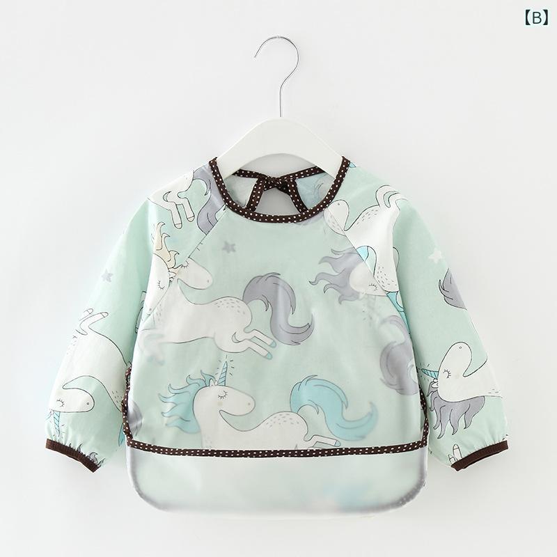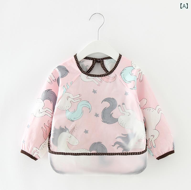 食事用エプロン ベビー キッズ 防水 長袖 コットン スモック 食べこぼし防止 汚れ防止 離乳食 お絵描き用 遊び着 ポケット付き かわいい柄