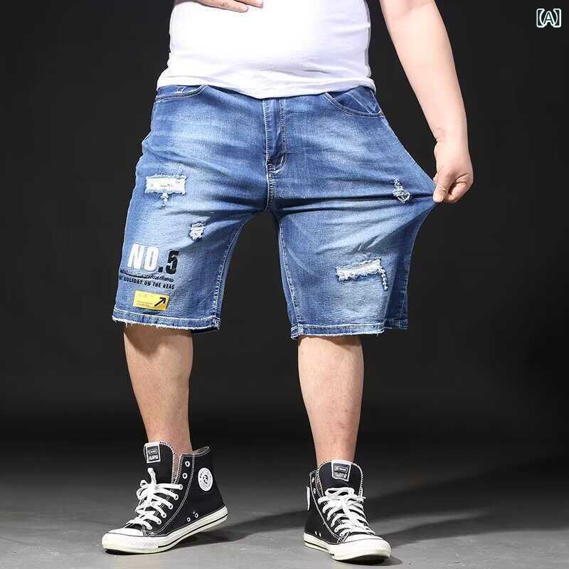 デニムハーフパンツ メンズ 男性用 大きいサイズ 五分丈 ゆったり ストレート ダメージ加工 トレンド 綿 ストレッチ 薄手 夏季 カジュアル ブルー