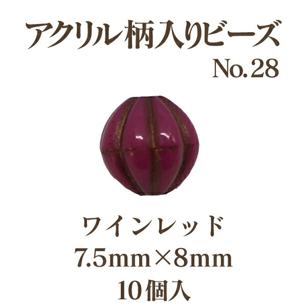 アクリルガライリビーズNo.28(7.5mm×8mm)10個入 エスニック柄 通し穴 パーツ