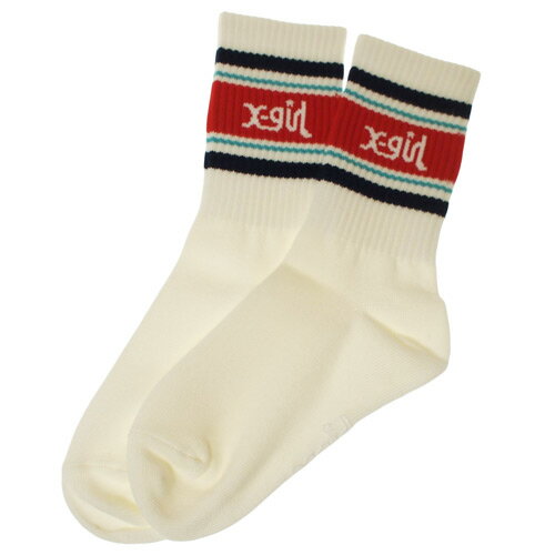 X-girl Stages 子ども用 靴下 13-21cm エックスガールステージス ラインロゴリブクルーソックス オフホワイト メール便OK キッズ ベビー服 子供服 女の子 13-15cm/15-17cm/17cm-19cm/19cm-21cm baby kids