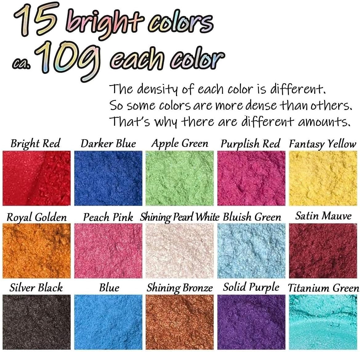 【BF限定10倍P&10%OFF】 レジン 着色剤 マイカパウダー ネイルパウダー 15色セット 10g/色 レジン染料 エポキシ DIY バスボム 絵具 スライム キャンドル作り 着色剤 塗装 石鹸 アイシャドウ