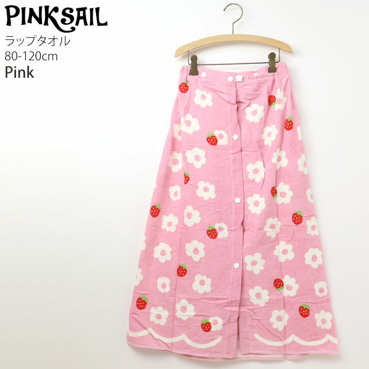 ラップタオル 花柄 いちご柄 女の子 キッズ 丈80cm 綿100% プールタオル 巻きタオル 着替えタオル スイムグッズ 水着 水泳 プール 海水浴 水遊び スイミング 子供用 PINKSAIL ピンクセイル 保育園 幼稚園 小学校 ピンク 紫 252010