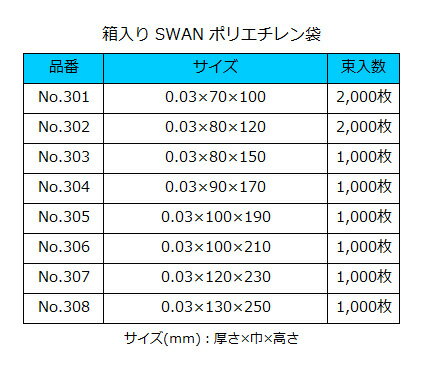 ポリ袋ケース販売 SWAN ポリエチレン袋【No.308】 厚み0.03mm 130×250mm 1,000枚入り食品用ポリ袋 工業用ポリ袋 シモジマ