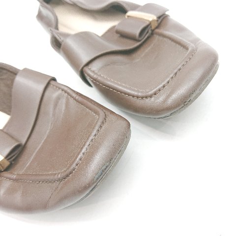 ◇ Θ Leilian PLUS ベルト風装飾 スクエアトゥ ローファー サイズM ブラウン レディース E 【中古】