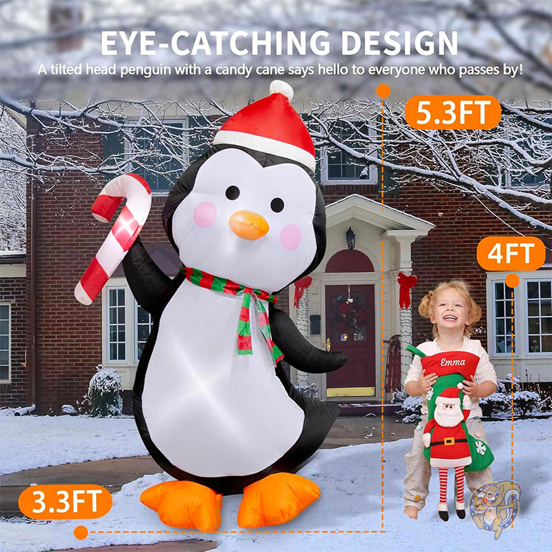 5フィート 152cm クリスマスインフレータブル 屋外デコレーション キャンディケイン ペンギン 膨らませる かわいいクリスマスデコレーション クリスマス 庭 屋外 屋内 パーティー 芝生 ガーデン ポーチ ホリデー ツービー TwoBees アメリカ クリスマスグッズ