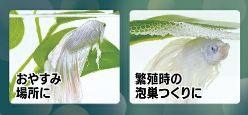■リラックスリーフ キスゴムタイプ *ベタの寝床・休憩場所に *繁殖時の泡巣づくりに ベタは自然下において水草の陰に隠れて生活しています。 本製品は水草を寝床や休憩場所にするベタの習性をいかした人工水草です。 休む事で、ベタがリラックスし、ストレスを減らすことにも役立ちます。 繁殖時のオスの泡巣作りにも最適です。 約W150×D90×H110(mm)