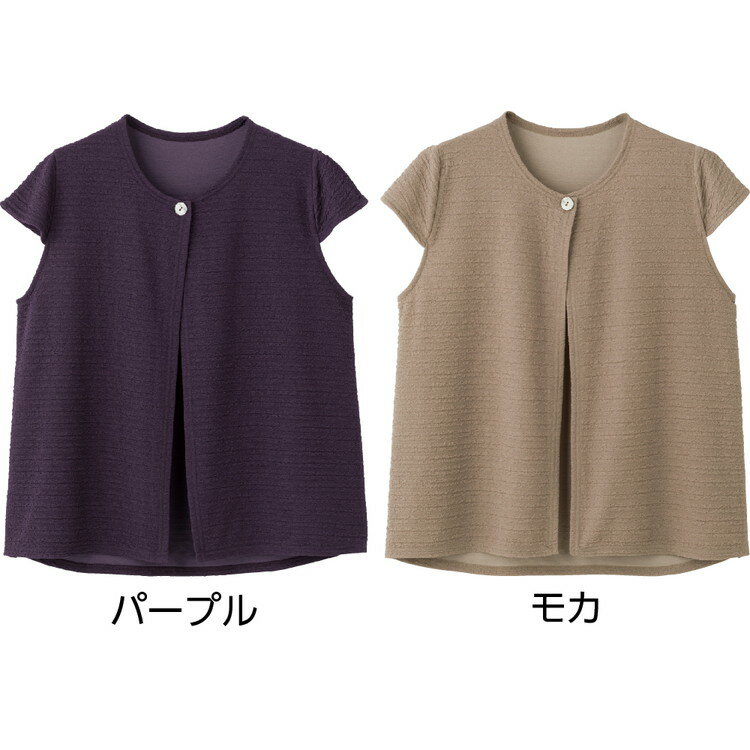 ベスト 袖付き レディース おしゃれ 春夏 羽織り カットワンボタントッパーベスト M〜L 821742 ケアファッション │ トップス 羽織り 羽織る オシャレ着 ワンボタン トッパー 女性 婦人 ミセス シニア ゆったり ストレッチ 伸縮 体型カバー プレゼント 2025SS