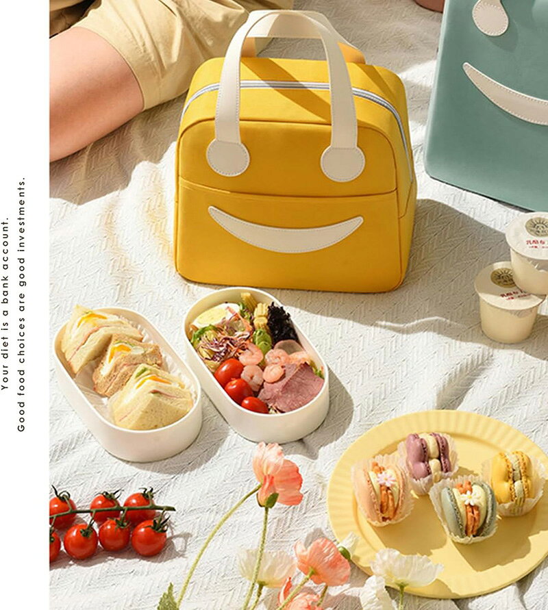 ランチバッグ 保温 保冷 軽量 洗える お弁当バッグ 弁当袋 お弁当 大容量 ピクニック キャンプ キャンプ 遠足 お弁当 ケース お弁当入れ 大容量 アルミ素材 バッグ 軽量 スマイルデザイン 手提げ 大容量 弁当バッグ 男女兼用 大きめ 通勤 通学 がま口 母の日 新生活応援