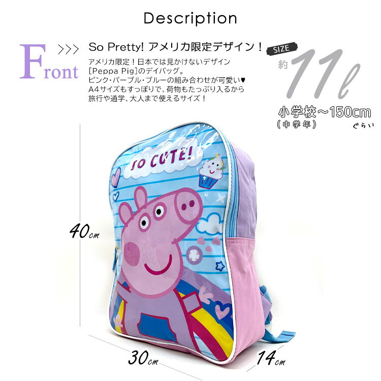 リュックサック ペッパピグ Lサイズ 総柄 女の子 ペッパーピグ リュック 子供用 キッズ バックパック 遠足 通学 子供
