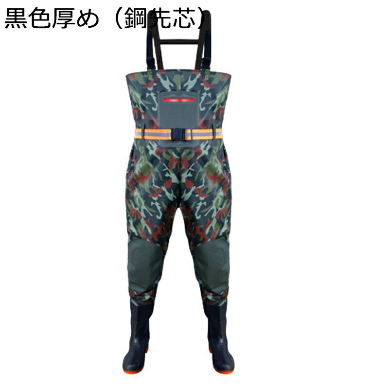 ◆◇◆人気の秘密◆◇◆ 【厚手の生地】胴付き長靴は厚手の生地で作られ。長持ちで。同じ素材のPVC生地が付属され、万が一鋭いものによる穴開けや破損した場合も補修で きます。補修用素材も製品と同じ色なので、補修跡が目立ちにくく、繰り返しご利用頂けます 【動きやすさ&ウエスト部にベルト】水中内で動きにくさ、窮屈さを改善するため、ウェーダーの股下を少し大きく設計しております。肩ベルトとウエストベルトの長さが調整可能なので、身長の差と少し体重がある人でも大丈夫です。 【ソール】はラジアルタイプで歩きやすい靴底になっています。動きやすく歩きやすいラジアルソール・アスファルトや砂の上など歩きやすくなているので移動も楽(苔や濡れた岩などは滑りやすく不向き)・ルアー釣り/アウトドア/キャンプ/レジャー/農作業/田んぼ/清掃など・2重強化縫製で水の侵入を防ぎます。 【チェストハイ型】ウェーダーですので、腰程度までの水深に対応が必要な状況や、フロートチューブを使う際に活躍します。足から胸までを覆う胴長靴ですので、履くだけで体が濡れるの防ぐ事ができます。長時間の着用でも疲労が少なく着心地も良い事が特徴です。 【ワンタッチ簡単着脱・多いサイズ】デザインによって、ワンタッチ脱着できます。H形のサスペンダーは調整可能で、大きいサイズもご用意しており、様々な体型にフィットします。【場合】アウトドアでの渓流釣や河口での川釣り・水仕事・農作業・畑仕事・漁業・水産業・除雪作業・冠水時など、あらゆる場面で野外活動をサポートします。 家で庭仕事・掃除する時普通の長靴では足りないような作業の時、これがあると役にたちます! 防災・災害用備品として、ご家庭だけでなく、職場やお店などにもあると安心です。 お風呂掃除、ガーデニング、アウトドア、旅行、渓流、農作業、洗車など...日常のあらゆるシーンに使いいただけます。【幅広く活躍】防水性と柔軟性に優れ、作業用、農業、園芸、お釣り、水仕事、水作業、野外作業、漁産業、水遊び、田植え、除雪、洗車などの際に活躍してくれる防水シューズ。 ◆◇◆注意事項◆◇◆ご覧のモニターの環境、撮影環境により実物と色味が異なって見える場合がございます。湿った状態で他のものと擦り合わせると色が移る恐れがあります。濃色品の洗濯時は、白色、淡色と分けて洗ってください。説明 ■完全防水ウェーダー 水中に入っても濡れないように施されており、 おもに釣り人が着用し、川や湖、海や河口で水中に入り込む場合によく用いられます。 陸からでは届かないポイントにも水に立ち込むことで攻める範囲が広がり、 楽しさが倍増し、且つ安全にウェーディングを楽しめます。 ■材質ウェーダー 外層材質はpvcを採用し、高い耐水性のほか、油汚れや酸・アルカリにも強いです。 高温で継ぎ目を密封し、より効果的な浸水防止 水温で奪われる体温の低下スピードを遅くします。 ■片足独立ヒップタイプ チェストタイプに比べ、履きやすく、脱ぎやすい。 片足づつ独立した作りになっており、太もも辺りまでをカバー。 動きやすいので移動にも適しています。 川辺や水深の浅い場所の「ちょい釣り」での使用にお勧めです。 ■様々な場所で活躍 渓流でのルアー釣りや、川釣り、潮干狩り、水産加工場、魚市場での現場作業着に、 家で庭仕事・掃除する時普通の長靴では足りないような作業の時、これがあると役にたちます! 防災・災害用備品として、ご家庭だけでなく、職場やお店などにもあると安心です。 ■ソール/靴底 ラジアルソールを採用しており、バス釣りや防波堤には最適です。 また、川底の危険を軽減出来るよう、濡れた地面や岩場でも安心して歩け 靴裏は厚底になっており踏みつけ怪我の防止になります。 ■サイズ ●サイズ【身長】160~165CM【ブーツ】24~24.5cm ●サイズ【身長】165~170CM【ブーツ】25~25.5cm ●サイズ【身長】170~175CM 【ブーツ】26~26.5cm ●サイズ【身長】175~180CM 【ブーツ】27~27.5cm ●サイズ【身長】180~185CM 【ブーツ】28~28.5cm ▼使用注意事項 1.商品到着時、素材特有の匂いがある場合がございます。その場合は、風通りの良い場所1〜2日置いて頂ければ匂いは無くなります。 2.ウェーダーはあくまでも濡れるのを防ぐための防水具です。 転倒などで内部に水が侵入する事でとても危険な事態にならないようにライフジャケットを必ず着用しましょう。 ▼お手入れ方法 1.使用後はブラシをかけずに水で洗い流すだけできれいになります。強い日光にさらさないで陰干ししてください。 2.PVCの材質なので、体にぴったりすることができなく、もしぴったりすると、しゃがみや屈曲などができない恐れがあります。 ゆったりとした快適な仕様にデザインされました。全身タイツが欲しい場合、これはあなたにちょっと合わないかもしれません。