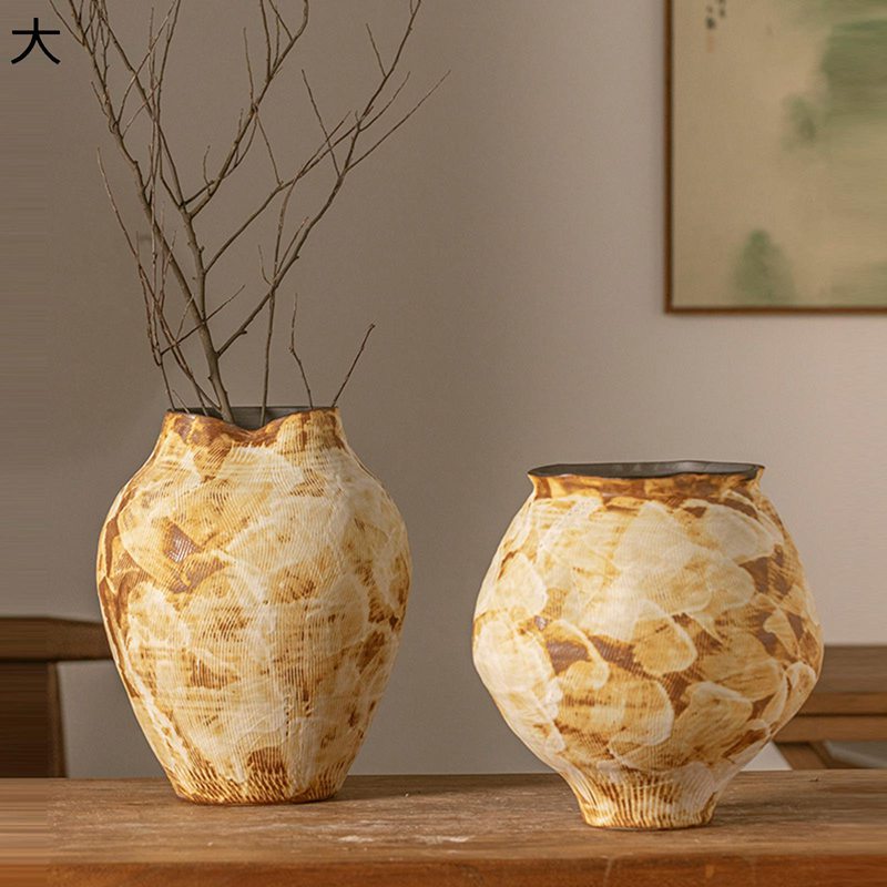 花びん フラワーポット花器 ベージュ シンプル花器 花瓶 高温磁器花器 陶磁製花器 ストライプ柄 生け花用花器 ドライフラワー用花器 創意装飾 家飾りアイテム ガーデン装飾 室内装飾 母の日ギフト