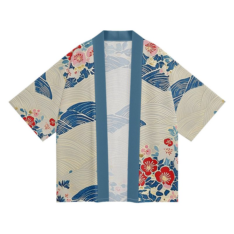 和柄カーディガン メンズ 和式パーカー 波 花柄 羽織 夏服 7分袖 開襟シャツ 透気 速乾 プリント 着物 日焼け止め 法被 半纏 ゆったり サマー お祭り衣装 ストリート 街着 冷房対策 ペアルック