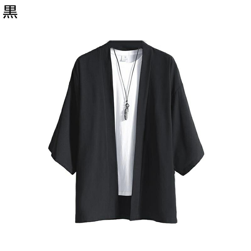 カーディガン メンズ レディース 夏服 開襟シャツ 無地 和式パーカー 七分袖 和風 羽織 シンプル カジュアル 薄い 軽量 日焼け止め 接触冷感 BIGシルエット 着物 祭り/散歩/部屋着 男女兼用