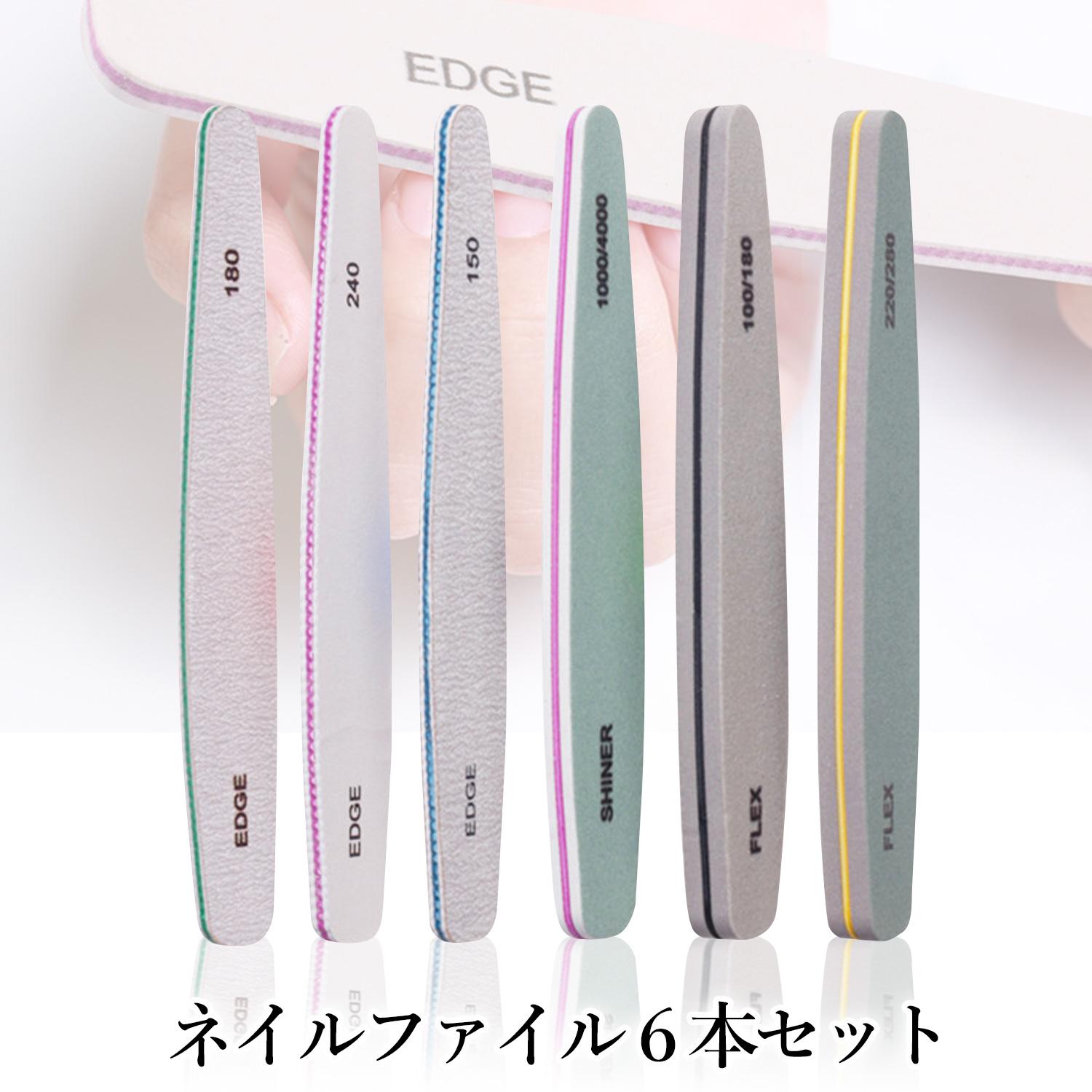 プロ仕様 ネイルファイル 爪やすり 6本セット 両面タイプ 150/180/240グリット ゼブラファイル&スポンジバッファー (管理S) 送料無料