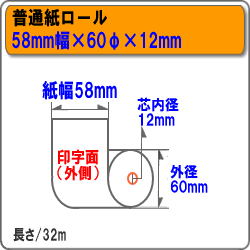 上質紙(普通紙)レジロール58mm幅60φ内径12mm120巻入レジスタ用 ロールペーパー