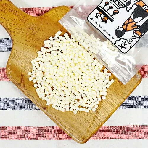フリーズドライ製法で仕上げたチーズを小さくカットしました★ サクッとした食感のうまうまおやつです♪ トッピングや手作りごはんの食材として、また、しつけのご褒美おやつとしてもおすすめです。 1日の給与量目安 サイズ 給与量 小型犬 2〜10g以内 中型犬 10〜15g以内 大型犬 15〜25g以内 注意事項 ●直射日光、高温多湿を避けて保存して下さい。 ●また開封後は冷暗所で保管しなるべく早くお召し上がり下さい。 ●喉に詰まらせないようご注意ください。 スペック 【内容量】30g 【原材料】乾燥チーズ 【成 分】 粗たんぱく質36.2%以上、粗脂肪44.7%以上、粗繊維0.5%以下、粗灰分8.3%以下、水分10%以下 カロリー:579kcal / 100g 【原産国】日本 【JANコード】4580402164945