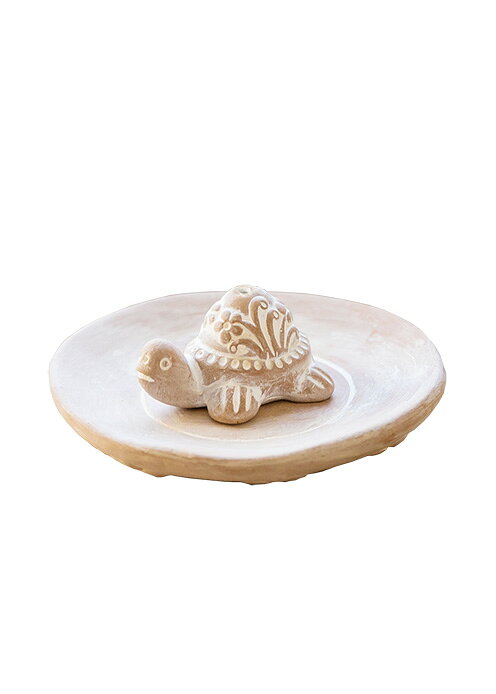 お皿にアニマルモチーフを載せた人気のインセンスホルダー。幸福の象徴ともいわれる素焼きのカメがかわいい。別売りの【 アーユルヴェーダ・インセンス 】や、【 アロマ線香・スティック型 】をあわせてご使用ください。●テラコッタ/ジュート・ワークス/バングラデシュより長さ約2.5×高さ約3×奥行き約4.5cm、皿:直径9.5cm ※ラッピングをご希望の方は こちら よりラッピングサービス(税込550円)をご追加ください。
