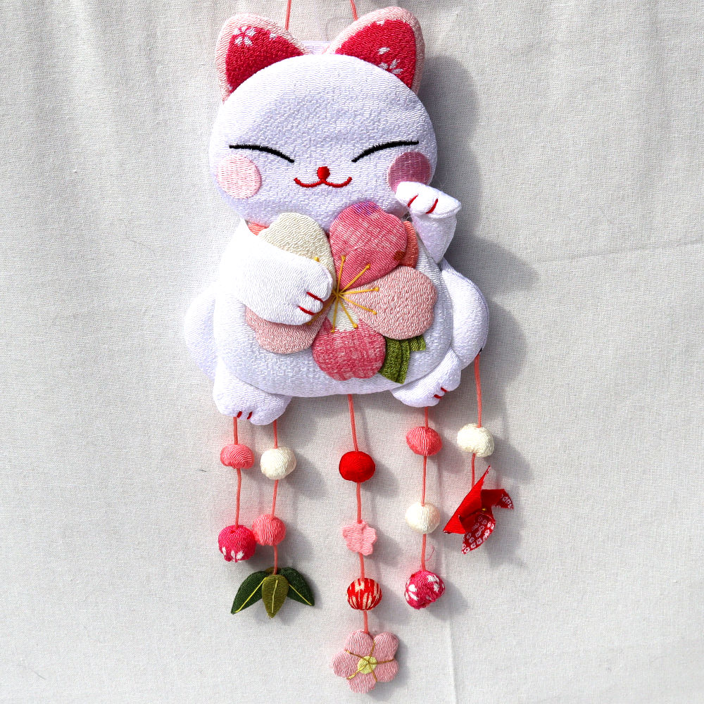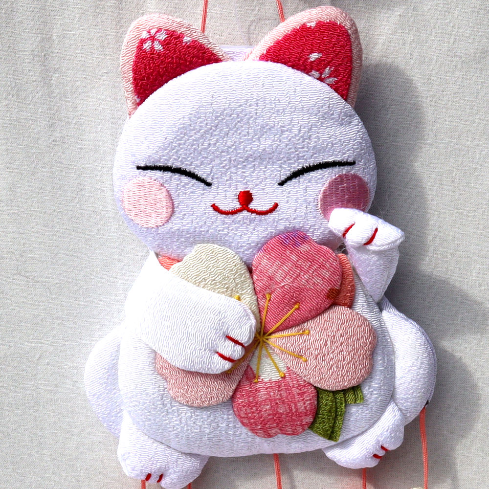 招き猫 開運 下げ飾り 桜 さくら ちりめん 猫 ちりめん細工 変わり下げ飾り ねこ■