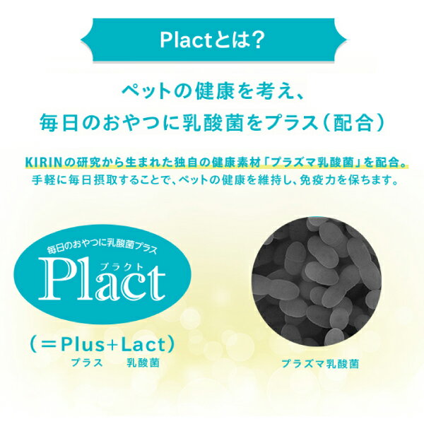 Plactはペットの健康を考えて乳酸菌をプラスしたブランドです。塩分1個当たり約0.01gで脂肪分約75%オフ(日本食品標準表2020「プロセスチーズ」と比較)だから、毎日のおやつや体重が気になる愛犬におすすめ!カマンベールの風味広がるひとくちサイズのチーズ。穀物不使用のグレインフリー。着色料・香料無添加。 【 原材料 】 チーズ(カマンベール・他)、卵類、乳清たん白濃縮物、殺菌乳酸菌(プラズマ乳酸菌)、加工でんぷん、グリセリン、炭酸Ca、プロピレングリコール、リン酸塩(Na)、カゼインNa、保存料(ソルビン酸K)、pH調整剤、酸化防止剤(V.E) 【 保証分析値 】 たん白質:6.0%以上、脂質:3.5%以上、粗繊維:0.5%以下、灰分:6.0%以下、水分:40.0%以下 【 代謝エネルギー 】 278kcal/100g 【 原産国 】 日本 【 メーカー名 】 ペティオ 【 JANコード 】 4903588140914
