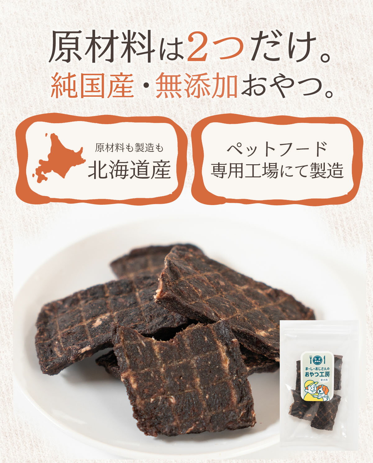 北海道産 無添加 牛肉・エゾ鹿肉せんべい【まーしーおじさんのおやつ工房】犬 おやつ 無添加 国産 北海道産 エゾ鹿 ジャーキー 50g アレルギー対応 シニア 犬用 鹿肉 ドッグフード えぞ鹿 プレゼント [ペットスクエアR2]