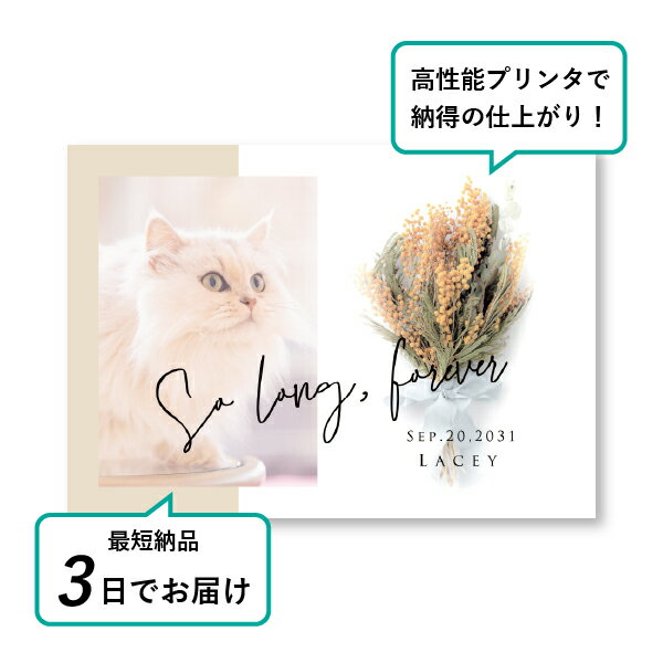 ペット 位牌 フォトメモリアルボード(シャルムドブーケ ミモザ) A4サイズ(ペット 位牌 写真 名前 年月日 記念 形見 メモリアルグッズ ペット供養 ペット仏壇 初盆 犬 わんちゃん 猫 うさぎ ハムスター 鳥 小動物 思い出 かわいい おしゃれ)