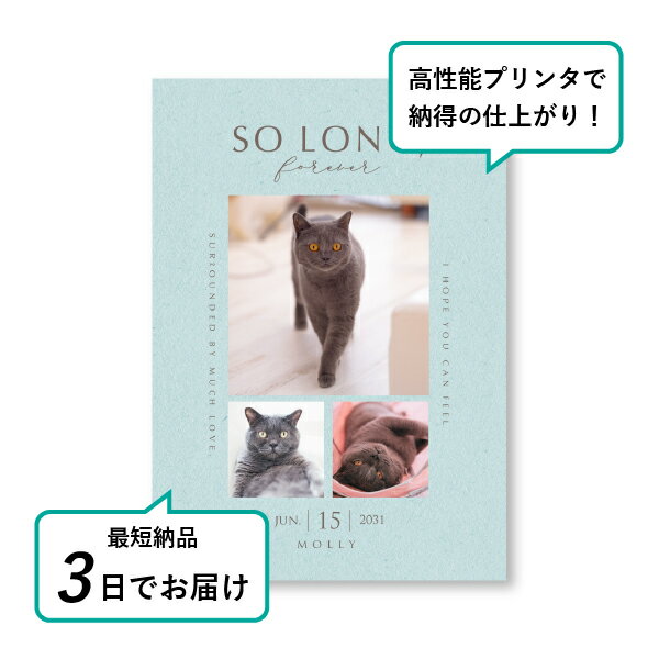 こちらの名入れ商品は、すべて大文字にてお入れいたします。例)Hanako, hanako → HANAKOフォトメモリアルボード(ベストモーメント ダスティブルー) A5サイズ商品番号:epp076 ・商品サイズ:■A5サイズ:約幅198×奥行85×高さ251mm(用紙:約縦210×横148mm) ・フレームつき フォトウェルカムボード ・材質■フレーム:アクリル アニマルファミリーの写真やお名前、記念日が入れられるアクリル製のメモリアルボードです。犬や猫はもちろん、あらゆる大切なアニマルファミリーのご供養にご利用いただけます。 世界に1つだけのメモリアルボードです。 お届けについて ご注文からお届けまで3日程いただきます。 ご注意 ディスプレイに使用している造花や、その他装飾品は撮影用小物となります。 商品ご購入の際のお願い ※オーダーメイド商品のため、原則ご注文後のキャンセルは承ることができません。あらかじめご了承ください。 なお、万一キャンセル・変更となりました場合は、キャンセル料をいただくことがございます。あらかじめご了承くださいますようお願いいたします。 >>キャンセル・変更についてはこちら ※名入れ商品となりますので、カート内「お支払・配送方法の段階」の備考欄にて、「記念日」と「お名前(英字)」をご入力ください。