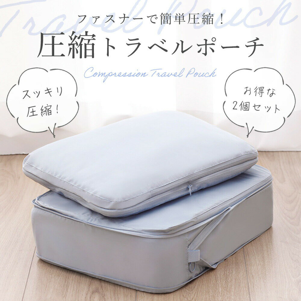 トラベルポーチ 収納ポーチ 旅行用圧縮袋 2点セット 旅行 ポーチ ファスナー付き 圧縮バッグ コンパクト 衣類旅行圧縮 バッグインバッグ おむつポーチ ファスナー圧縮 スペース節約 軽量 出張 旅行 仕分け 簡単 整理 防災グッズ レディース